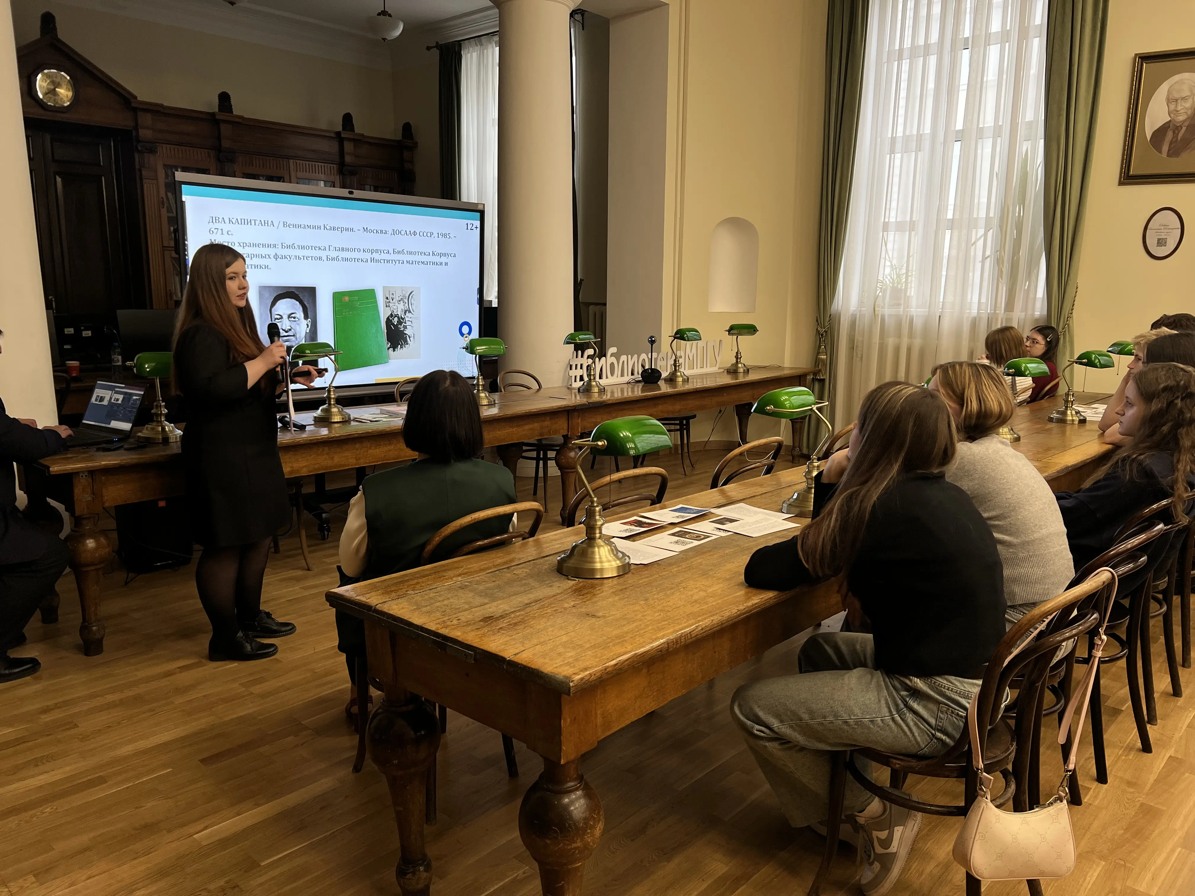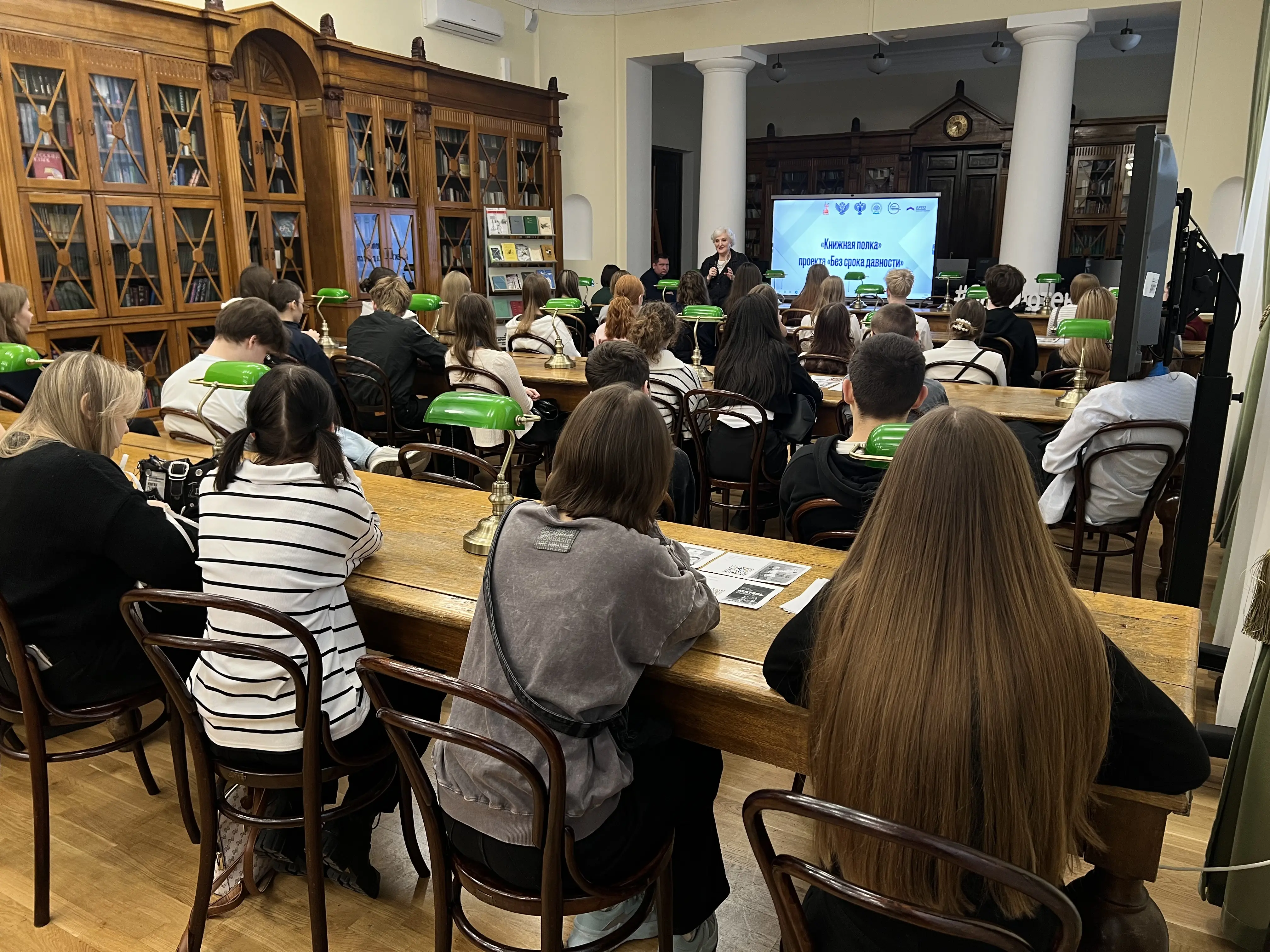 Ключевым моментом встречи стала презентация направления «Книжная полка проекта «Без срока давности». Кудрявцева Юлия Львовна, ведущий специалист Управления общественных проектов МПГУ, показала школьникам, как работать со страницей рубрики на сайте проекта. Она познакомила обучающихся с книгами, представленными на книжной полке, дала рекомендации по выбору произведения в зависимости от возраста читателя и подготовленности к чтению литературы данной тематики.