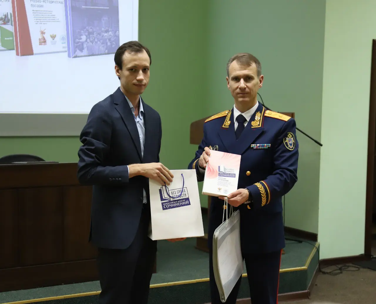 Одним из гостей мероприятия стал ведущий специалист Управления общественных проектов Московского педагогического государственного университета, федеральный эксперт проекта «Без срока давности» Антон Сергеевич Саенко. В своем выступлении он отметил особую роль органов следствия в увековечении памяти жертв нацистских преступлений и установлении фактов геноцида советского народа нацистами и их пособниками в годы Великой Отечественной войны. Московский педагогический государственный университет как федеральный оператор-образовательно-просветительских мероприятий проекта «Без срока давности» ведет большую научно-методическую работу. Результатом этой работы стало издание серии учебно-методических, методических пособий, историко-документальных изданий. Во время мероприятия библиотеке Московской академии Следственного комитета имени А.Я. Сухарева была передана серия таких зданий, а также материалы выставочного проекта «Судебные процессы о геноциде мирного населения в годы Великой Отечественной войны 1941–1945 гг.» и сборник работ победителей и призеров Международного конкурса сочинений «Без срока давности» 2024 года.